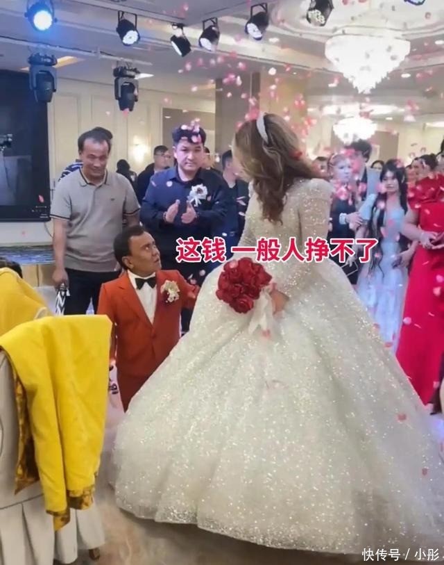 视频里的新郎已岁,天生患有侏儒症,身高还不米,站在人群里堪岁孩童。虽然穿了一身笔挺的红色西装,但满脸的老气和略显粗粝的神态,和稚嫩的身高形成了强烈反差。再看新娘,高挑漂亮,面容清秀,一袭洁白婚纱衬得气质出众,两人站在一起,新郎的脑袋还够不到新娘的腰,颜值和身高差得不是一星半点。